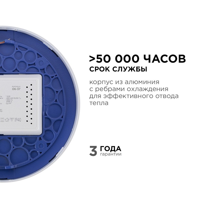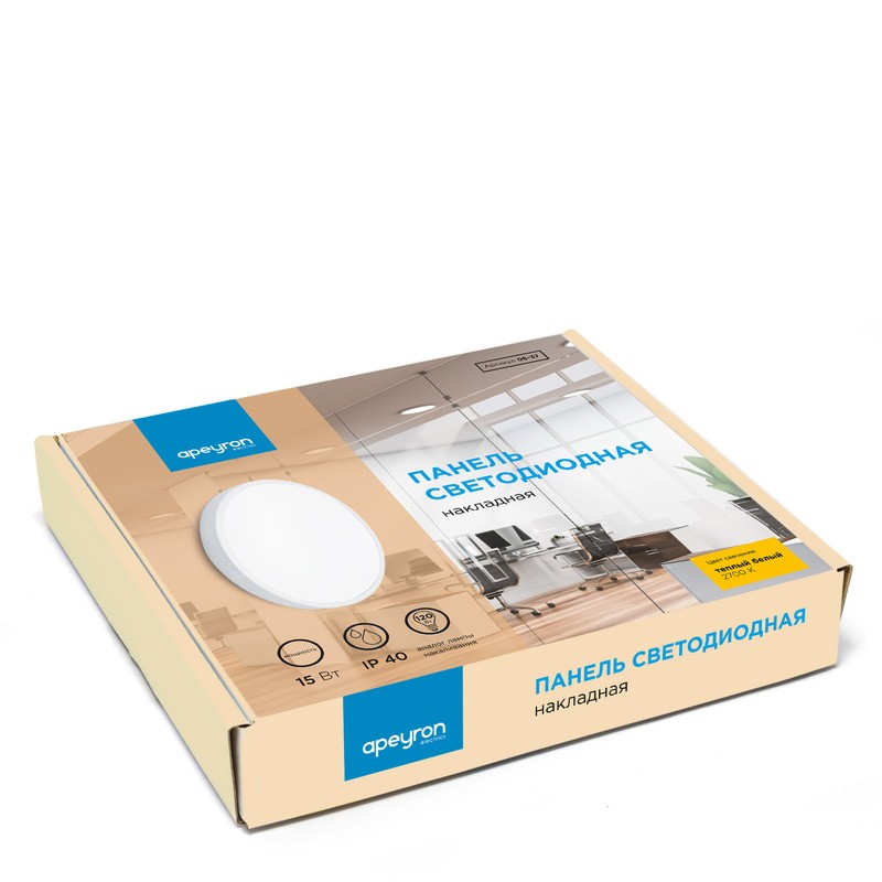 Светодиодная панель 06-37 излучает световой поток в 1200Лм, потребляя при этом 15Вт, что в итоге дает энергоэффективность 80Лм/Вт. Цветовая температура 2700К – это цвет теплого предзакатного солнца. Теплый цвет свечения создает уютную атмосферу в помещении. Встроенный драйвер снимет вопрос о том, как его разместить, и облегчит монтаж светильника. Круглая форма корпуса позволит создать дизайн с оттенками вечности, тайны и магии. Накладной тип монтажа позволит смонтировать эту панель на любую плоскость, а наличие в комплекте всех необходимых для этого деталей подарит возможность не задумываться в последний момент, где их взять.