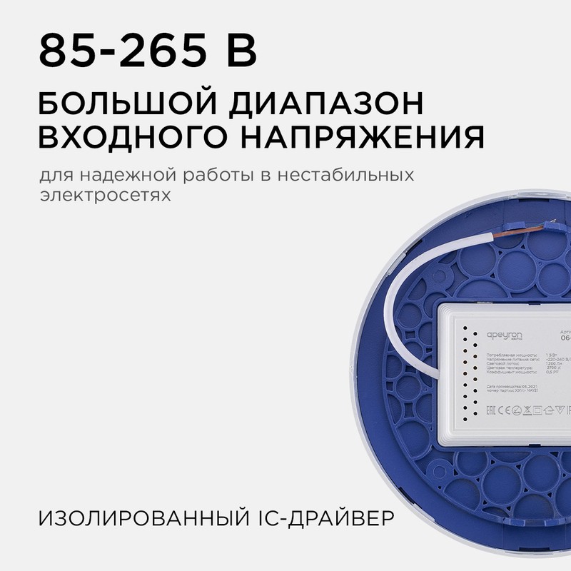 - Большой диапазон входного напряжения 85–265 В для надежной работы в нестабильных электросетях;
