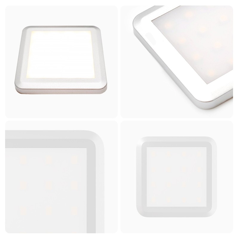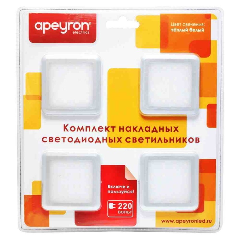 Комплект квадратных светодиодных светильников используется в качестве функциональной подсветки мебели (шкафов, рабочих и кухонных зон, полок), интерьерной подсветки, а также декоративного освещения. По типу монтажа изделие является накладным, что позволяет легко и быстро закрепить изделие на мебельной поверхности. Комплект включает в себя все необходимые элементы для установки и подключения светильников к электросети 220 В: 4 шт. накладных светодиодных светильника с кабелем длиной 1 м, 1 шт. блок питания 12 В с выключателем и кабелем длиной 2 м, переходник для 8 светильников, монтажные шурупы. Все кабели оснащены коннекторами для удобства монтажа. Размер светильника 55х55х6 мм. Цвет свечения – теплый белый. Световой поток 500 Лм. Потребляемая мощность 1,3 Вт х 4 шт., что является эквивалентом лампы накаливания 50 Вт. Степень защиты соответствует стандарту IP20, что подразумевает использование только в сухих и проветриваемых помещениях. Готовый комплект: включи и пользуйся. Срок службы более 50 000 часов.